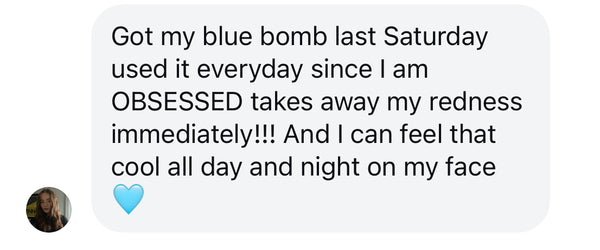 Apply Blue Bomb to the face in gentle upward motions whenever you feel stressed or overheated. Glide it around the face including the eye area as it is safe to use around your eyes and helps reduce redness and dark circles.